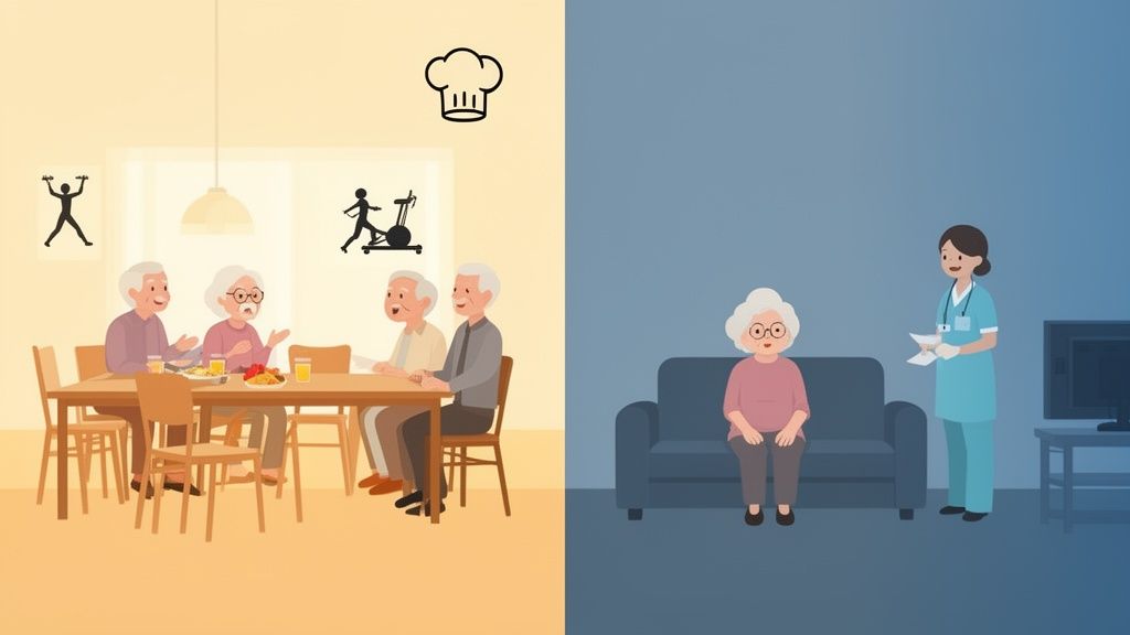 When you add all that up, it can easily meet or even exceed the single monthly fee of a high-end community. It's an apples-to-apples comparison you have to make—don't just look at an hourly care rate versus a community's monthly rent.