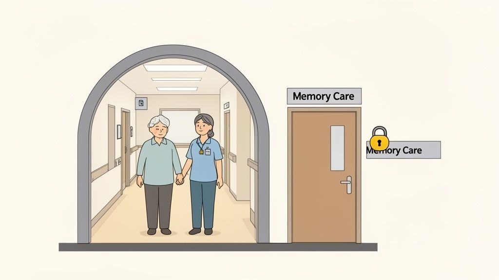 When dementia or Alzheimer's enters the picture, the entire conversation about senior care has to change. Suddenly, you're not just thinking about convenience or social calendars; you're having a critical discussion about specialized safety and expert, round-the-clock care. For families in Beachwood and across the East Side, the most important first step is grasping the profound difference between a standard assisted living apartment and a secured memory care unit.