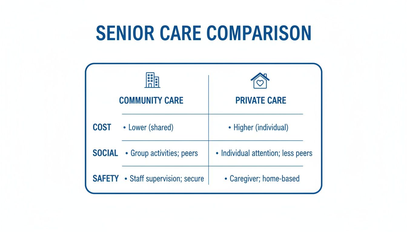 There isn't a single "right" answer that works for everyone. But there is a right path forward for your family. The best choice almost always comes down to four key areas: the true, all-in cost; your loved one's need for social connection; the level of professional safety and oversight required; and the complexity of their health needs, both now and in the future.