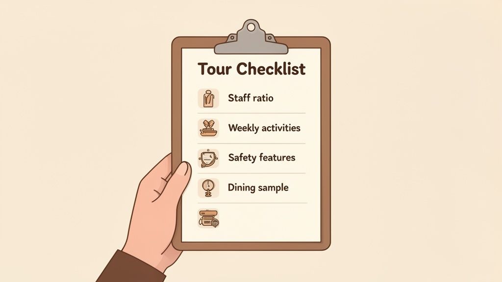 This checklist is designed to be your guide. It’ll help you ask the tough but necessary questions that tours sometimes skim over, giving you a genuine feel for what daily life is truly like for the people who live there. So instead of just asking if they offer activities, you'll be asking to see this week's specific memory care calendar.