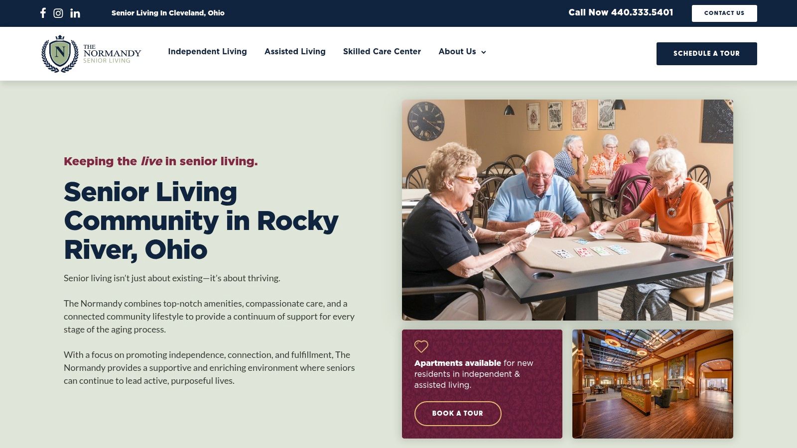 The Normandy stands out with its prime Rocky River location, offering easy access to lakeside parks and green spaces which is a significant perk for dog owners. The campus structure, which includes independent living (Breakwater), assisted living (Lakeside), and memory care (Edie’s Place), provides a continuum of care that is reassuring for families. Their public acknowledgment of pet therapy within assisted living programming shows an integrated approach to wellness, where companion animals are part of the therapeutic environment, not just an exception.