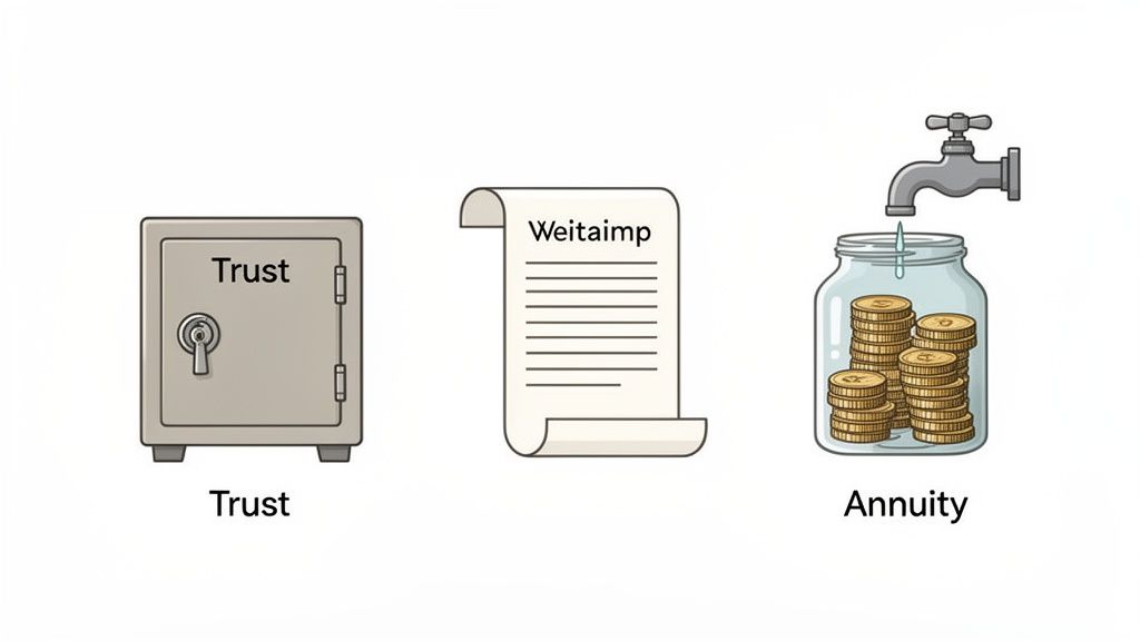 For families planning well in advance, the most powerful tool is the Irrevocable Trust. It’s a secure "safe deposit box" for your most valuable assets. You place things like your home or investments into this trust, and a person you appoint (the trustee) manages them according to your rules.